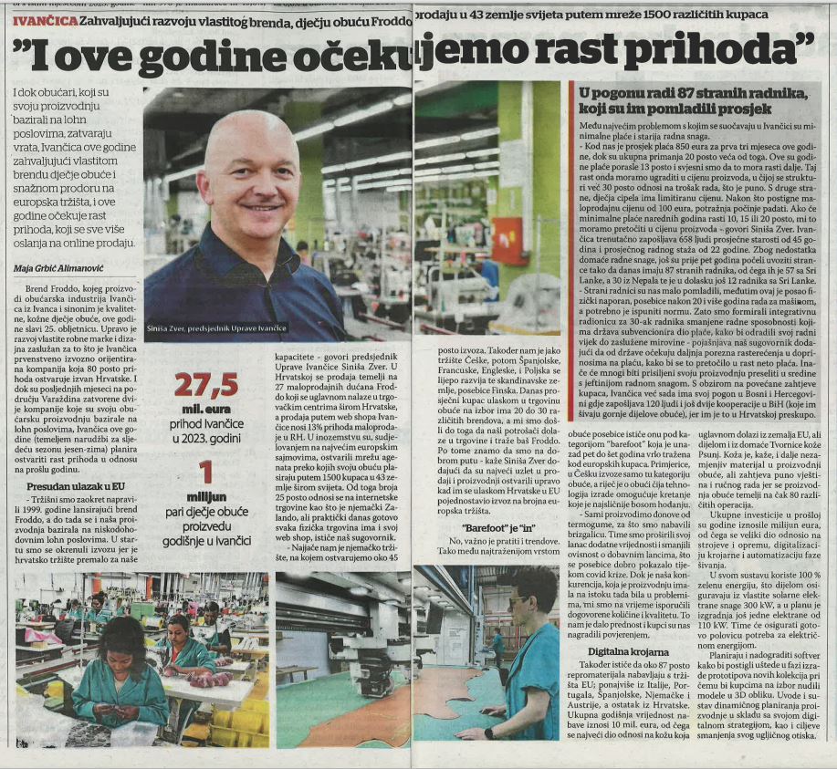 U ekskluzivnom intervjuu za Schuhkurier časopis, Predsjednik Uprave tvrtke Ivančica d.d, Siniša Zver, istaknuo je ključne faktore uspjeha svoje dječje obućarske marke Froddo. Naglasio je da tvrtka kontinuirano ulaže u tehnologiju i unapređuje procese proizvodnje kako bi održala visoke standarde kvalitete. Također je istaknuo njihovu čvrstu posvećenost održivosti i stjecanje važnih ISO certifikacija. Ova strategija je rezultirala proširenjem njihove ponude proizvoda, a tvrtka sada planira širenje prisutnosti na ključnim tržištima. Froddo, kao hrvatska marka dječje obuće, postaje sve prepoznatljivija i uspješnija zahvaljujući svojoj cjelovitoj poslovnoj strategiji koju je predstavio Siniša Zver.
